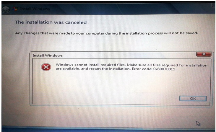 Here the Screen shows error code 0x80070015. After pressing ok I got the screen for Startup repair